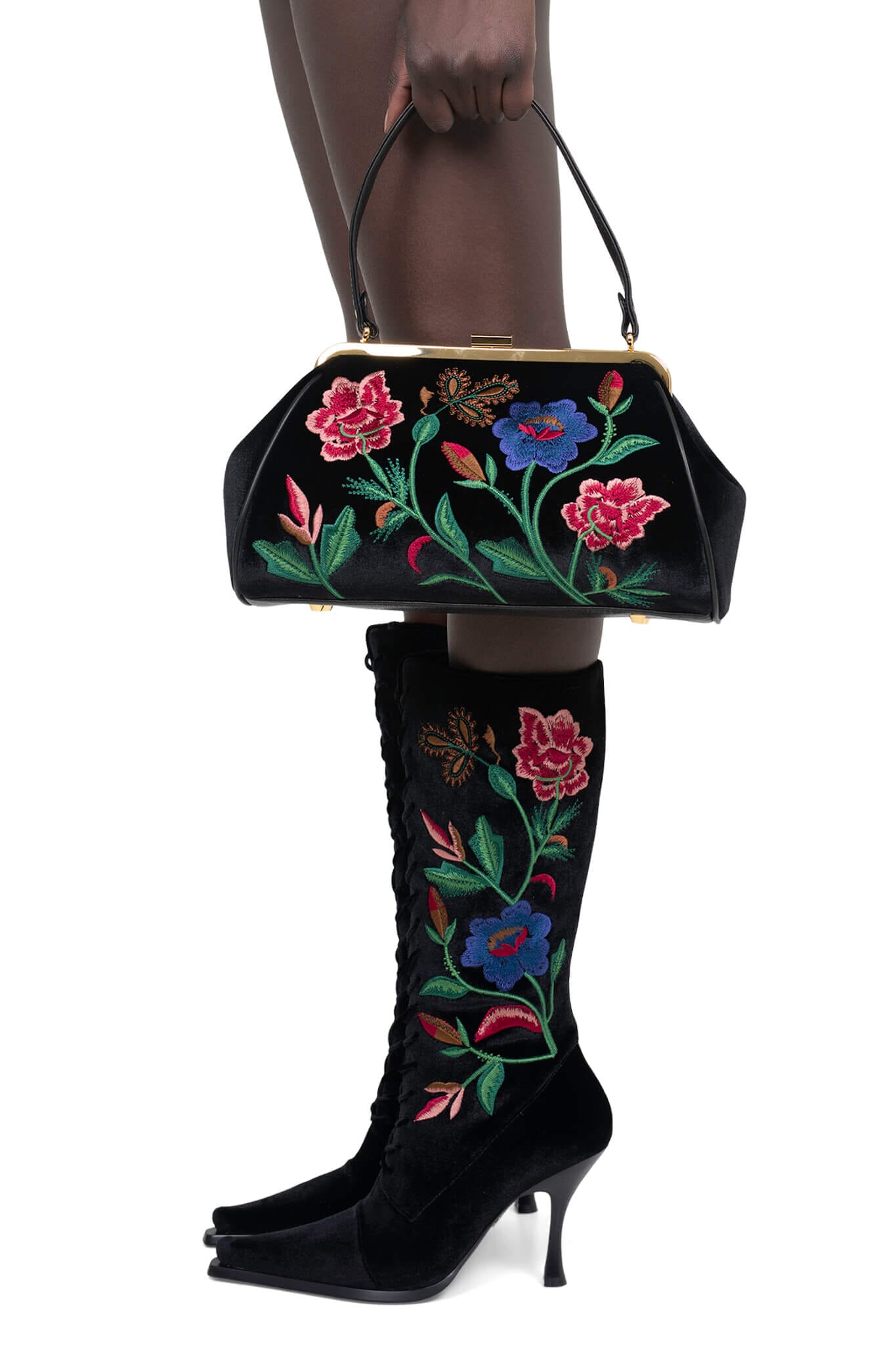 Velvet embroidered handbag