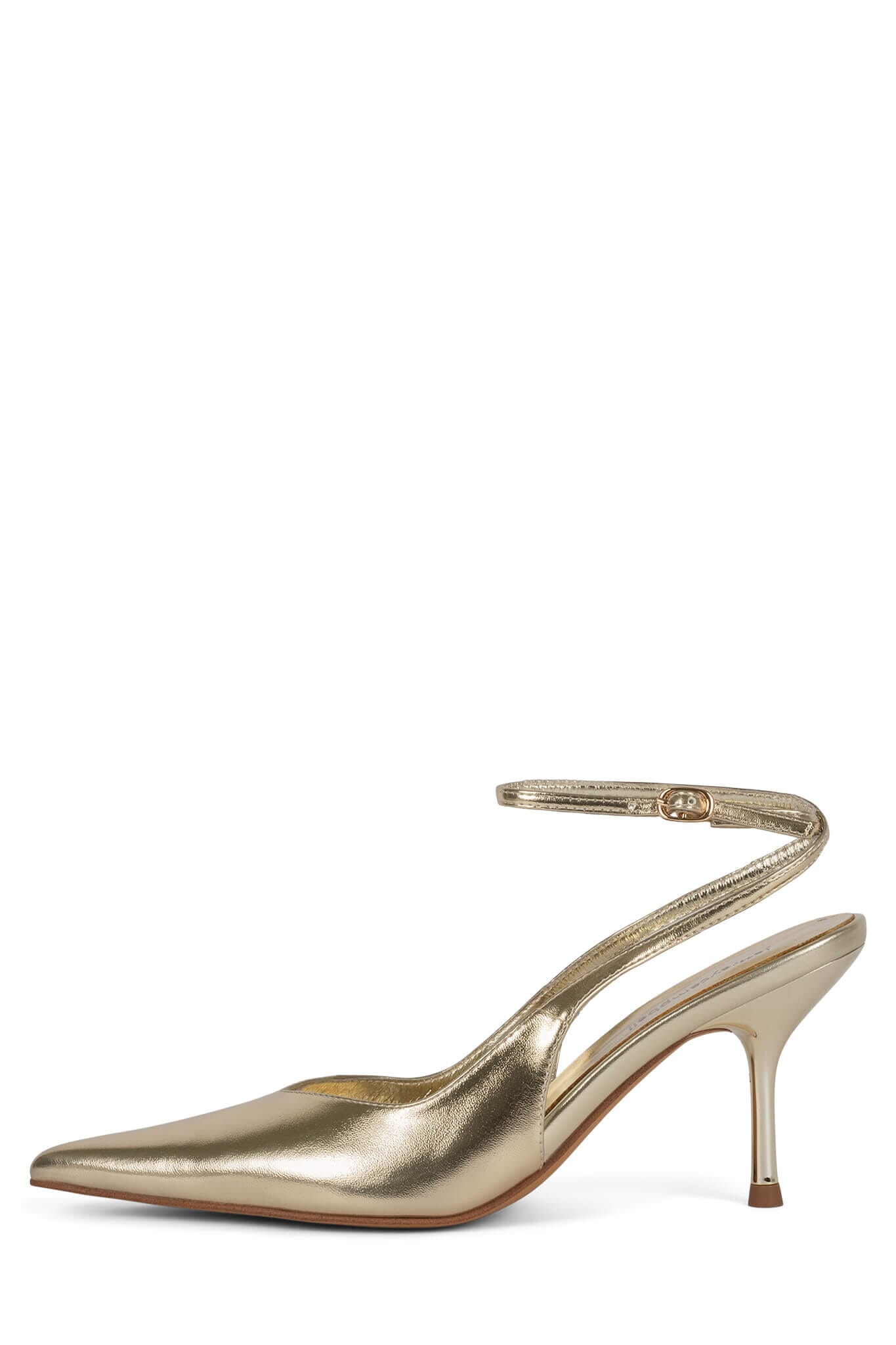 Pointed-toe slingback ankle strap pump